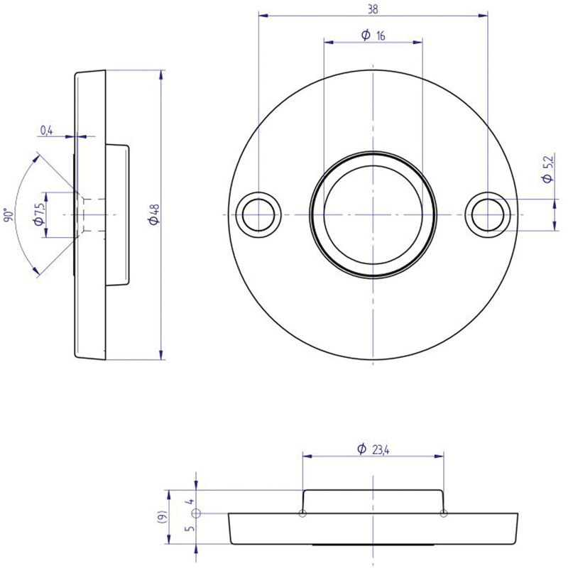 - Distance entre les trous de vis 38 mm: convient pour un montage en continu. Ne peut pas être percé avec Ø 8 mm.