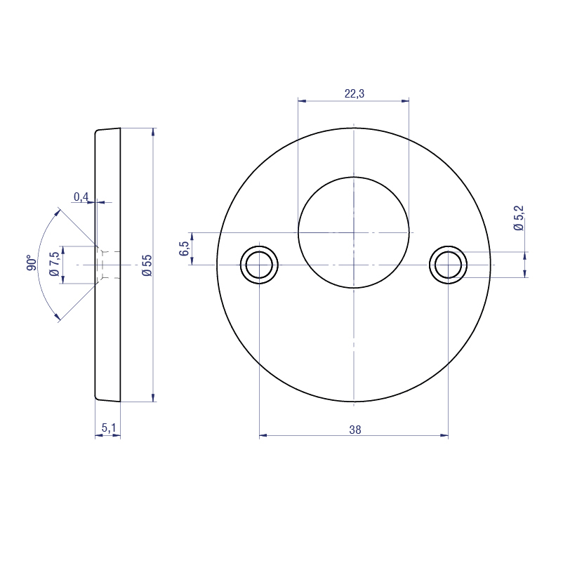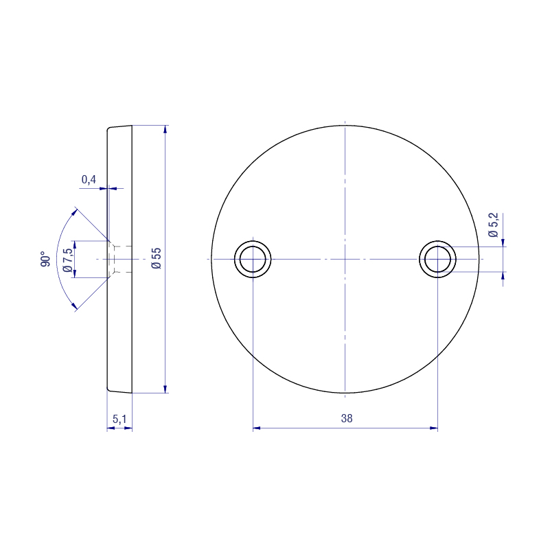 - Distance entre les trous de vis 38 mm: convient pour un montage en continu. Ne peut pas être percé avec Ø 8 mm.