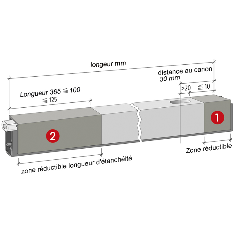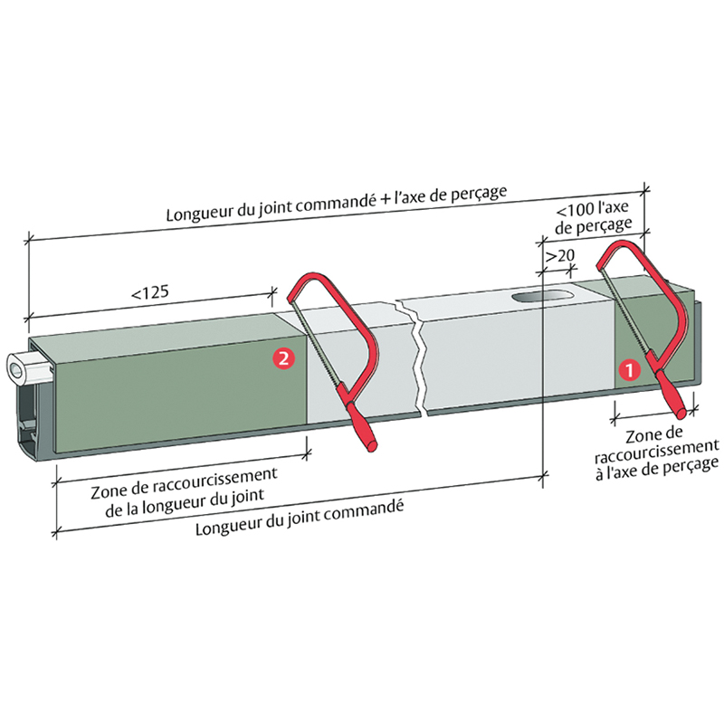 - Corriger l'ordre de raccourcissement: 1. tout d'abord l'écartement raccourcir (max. 10 mm possible), 2. puis le sceau raccourcir (voir tableau)