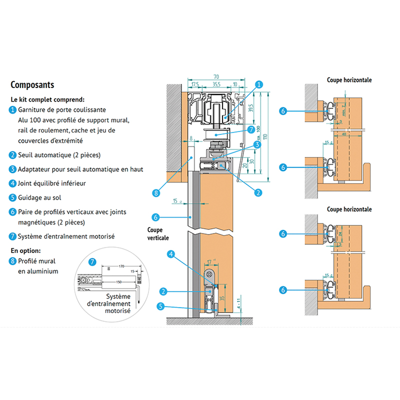 - Garniture de porte coulissante Tiger ALU 100 avec profilé support mural