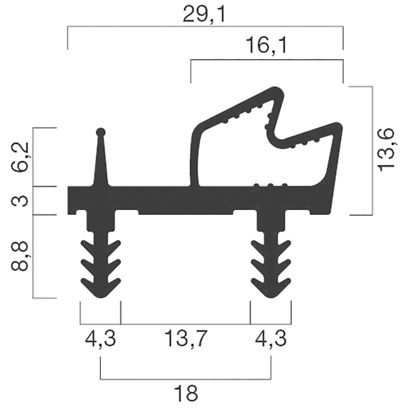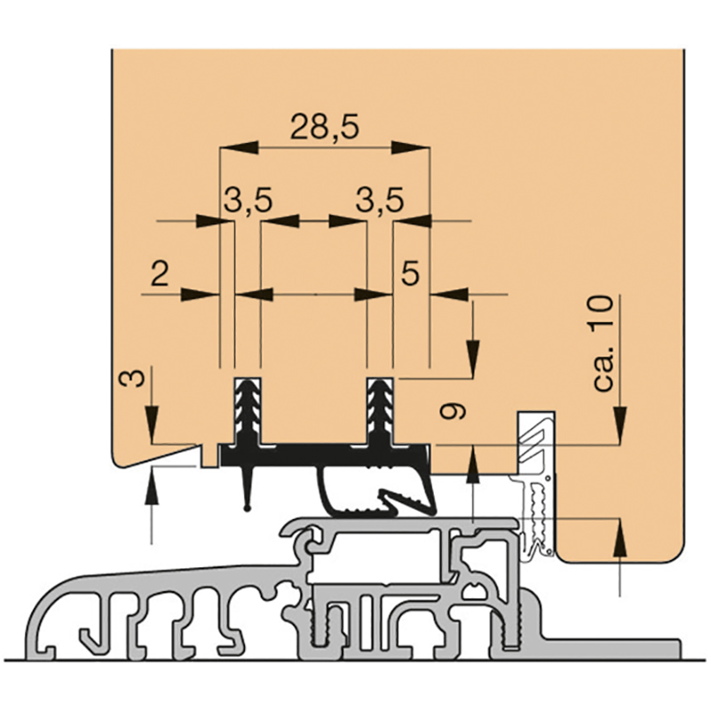 Si le plan d'étanchéité du joint d'encadrement est positionné selon le schéma, on obtient deux plans d'étanchéité périphériques dans la porte d'entrée, le joint de seuil est alors déclipsé en bas et repose ensuite sur le joint d'encadrement, ce qui donne un plan d'étanchéité continu