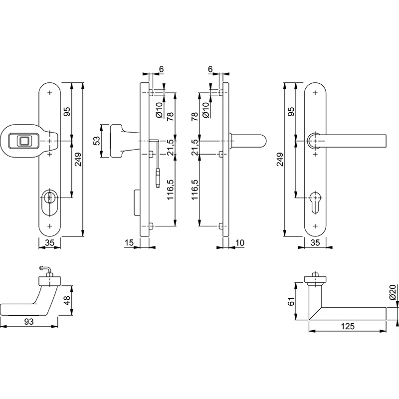 Contenu de la livraison: garniture de changement complète, lecteur d'empreintes digitales ekey intégré, liaison par câble scanner d'empreintes-contrôleur, Matériel de fixation