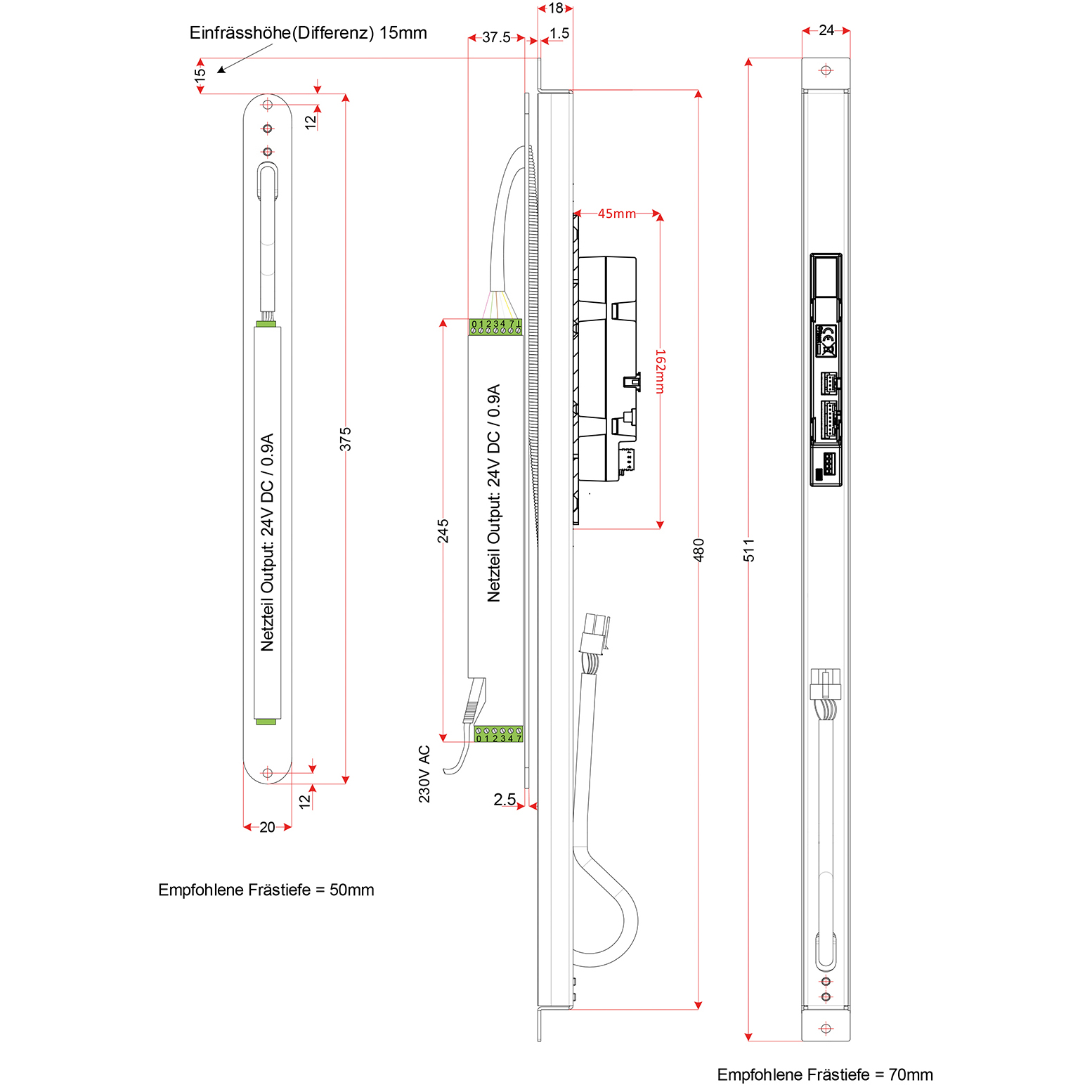 Set de biométrie GELA plug&play dLine, seau simple, à verrouillages multipoints 24V DC et poignées de lecture digitale