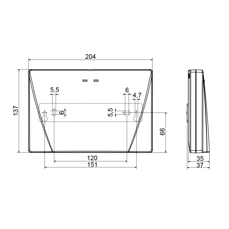 - Dimensions (L x H x P): 204 x 137 x 35 mm