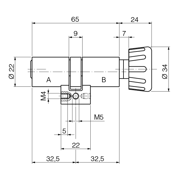 - Cylindre Ø 22 mm à bouton tournant Design dans le système Kaba star, voir 18.108.01-26