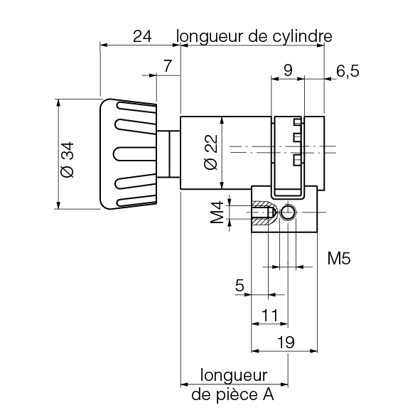 Demi-cylindre bouton tournant KABA, sans fermeture