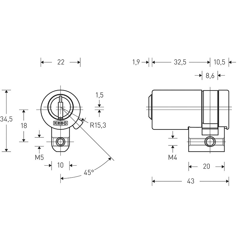 mat chromé, fermeture différente, avec 5 clés, avec vis de fixation 75 mm (distance au canon 60 + 70 mm), la protection anti-copie active Ω2 garantit que seules les clés originales KESO 8000 Ω2 peuvent ouvrir les cylindres, protection des investissements avec une durée de validité du brevet jusqu'en 2034, système de construction modulaire construction cylindrique construction modulaire avec système d'insertion