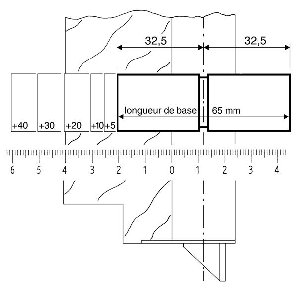 Base de départ épaisseur du bois 40 mm, recouvrement 18 mm, profondeur de feuillure 22 mm, épaisseur de boîte 24 mm