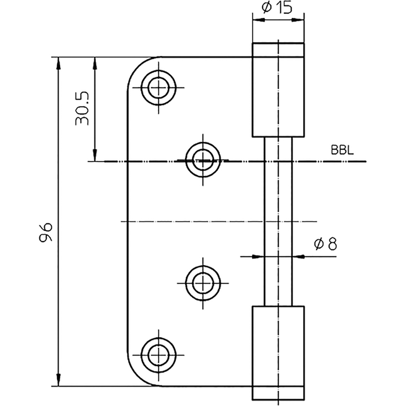 nickelée, avec techn. palier lisse sans entretien, pour portes affleurantes,