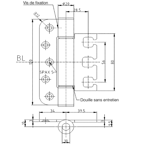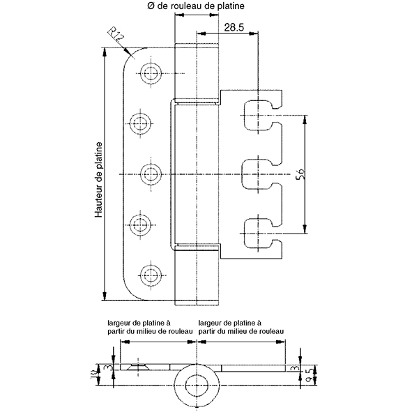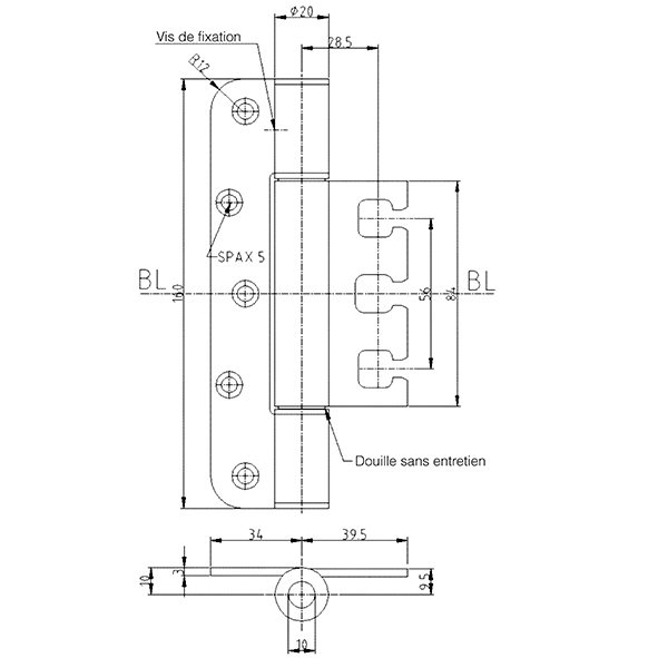 inox brossé, pour portes noyées et portes affleurantes à rainure, avec profondeur de feuillure faible, sans entretien, avec goupille de sécurité, construit un démontage, épaisseur de platine 3 mm, jeu de fixation 13,5 mm, à partir d'une hauteur de 100 mm: pour l'utilisation sur des portes dans des voies d'évacuation et de secours avec des exigences en matière de protection contre la fumée et l'incendie, force portante, hauteur de platine 95 mm, avec 2 fiches env. 80 kg, force portante, hauteur de platine 120 mm, avec 2 fiches env. 100 kg, force portante, hauteur de platine 160 mm, avec 2 fiches env. 120 kg