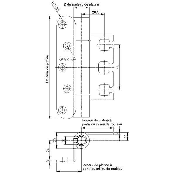 - Vis à tête fraisée Ø 5 mm.