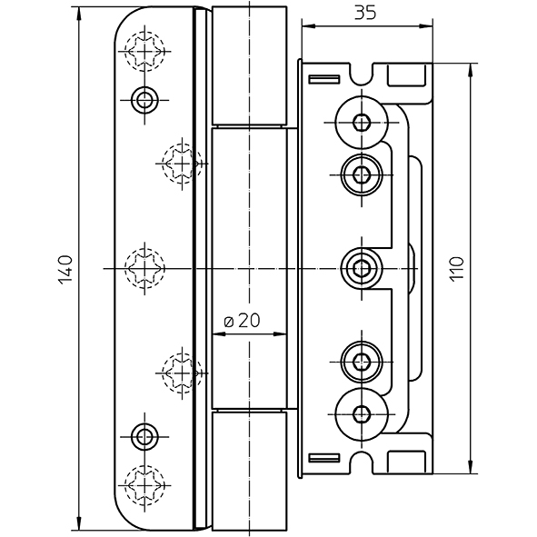 avec la technologie de roulement sans entretien et ajustement de confort, réglage en hauteur, sur le côté et pression d'appui ± 3 mm, toutes possibilités de réglage réalisables sans décrochage ou mise sur cale de la porte, compatible avec élément de logement caché dans le vantail et le cadre, frais minimes de fraisage, capacité de charge 160 kilos