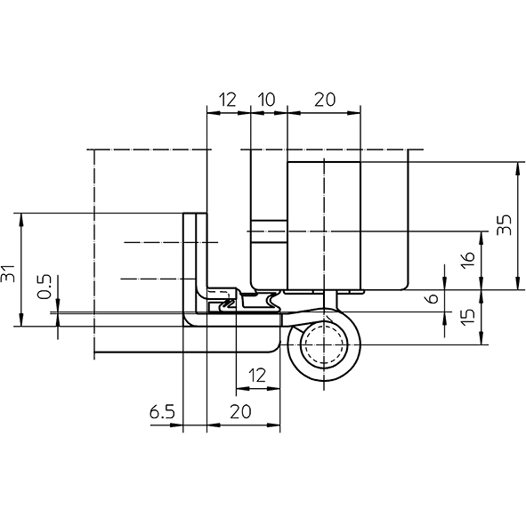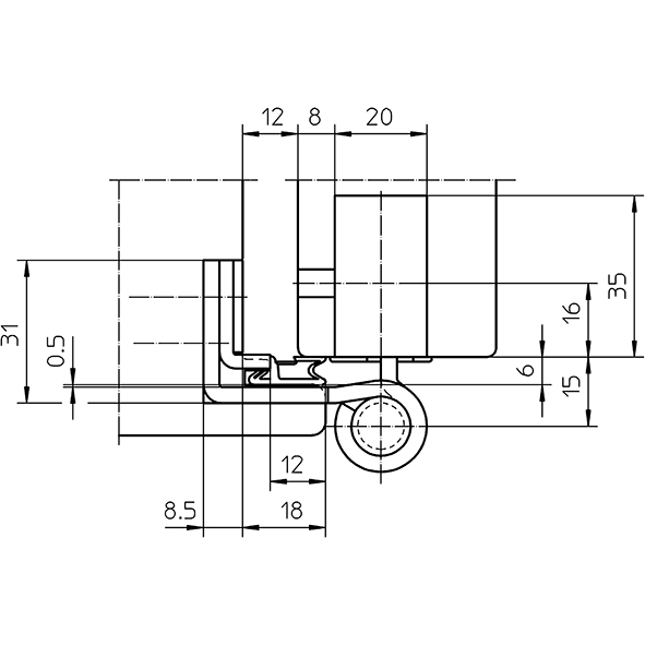 pour portes avec recouvrement de 18 et 20 mm avec jeu de recouvrement (tête 12 mm), pour un jeu de 12 mm,