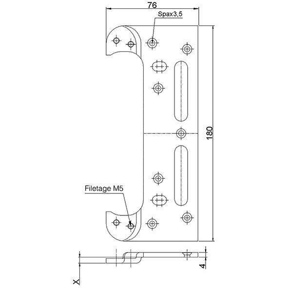- Plaque de logement avec coudage 1, 2, 3, 4, 5, 8 ou 9 mm sur demande.