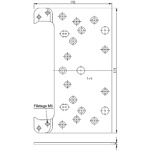 - Plaque de logement avec coudage 0,5, 1,5, 3, 3,5, 5, 5,5, 6, 6,5, 7 oder 8 mm sur demande.
