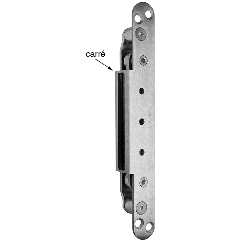 Châssis acier, angle de protection inox brossé, montage complet, découpe de protection intégré, plage de réglage de 3 mm, plaque frontale massive, force portante avec 2 fiches env. 150 kg