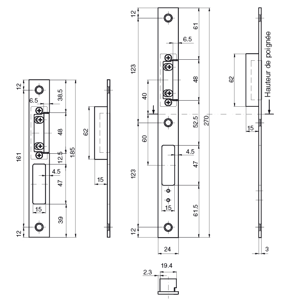 Set de gâche plate MSL BV-24421 VariFlex, pour verrouillage multipoints FlipLock