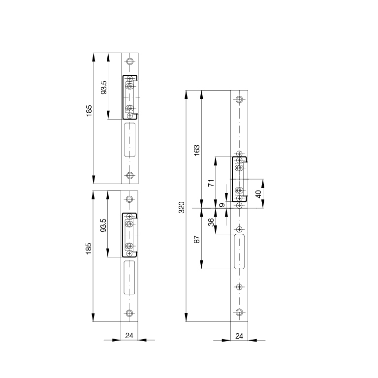 Gâche centrale et gâche vers le haut et gâche vers le bas