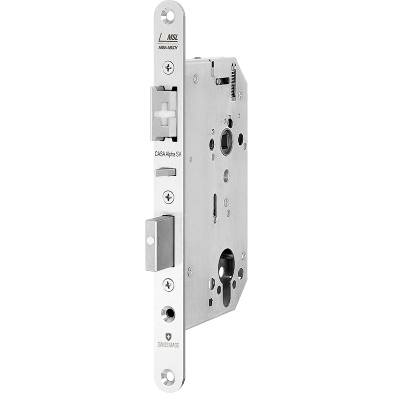 Serrure à mortaiser anti-panique MSL CASA-ALPHA 40104PE-SV, autoverrouillage, anti-panique E, têtière ronde 18 / 20 x 230 mm, inox mat