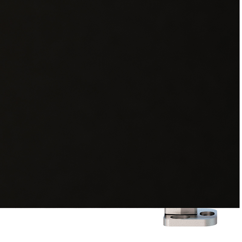 Système de suspension pour accrocher et décrocher la porte latéralement, les systèmes de fixation et de réglage sont placés sur le côté du panneau de porte, le système de suspension est entièrement encastré dans le panneau de porte afin de garantir une distance minimale entre le rail de roulement et le panneau de porte