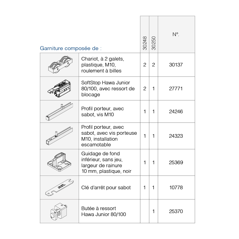 Ferrure pour porte coulissante bois, garniture complète HAWA Junior 100 B Pocket