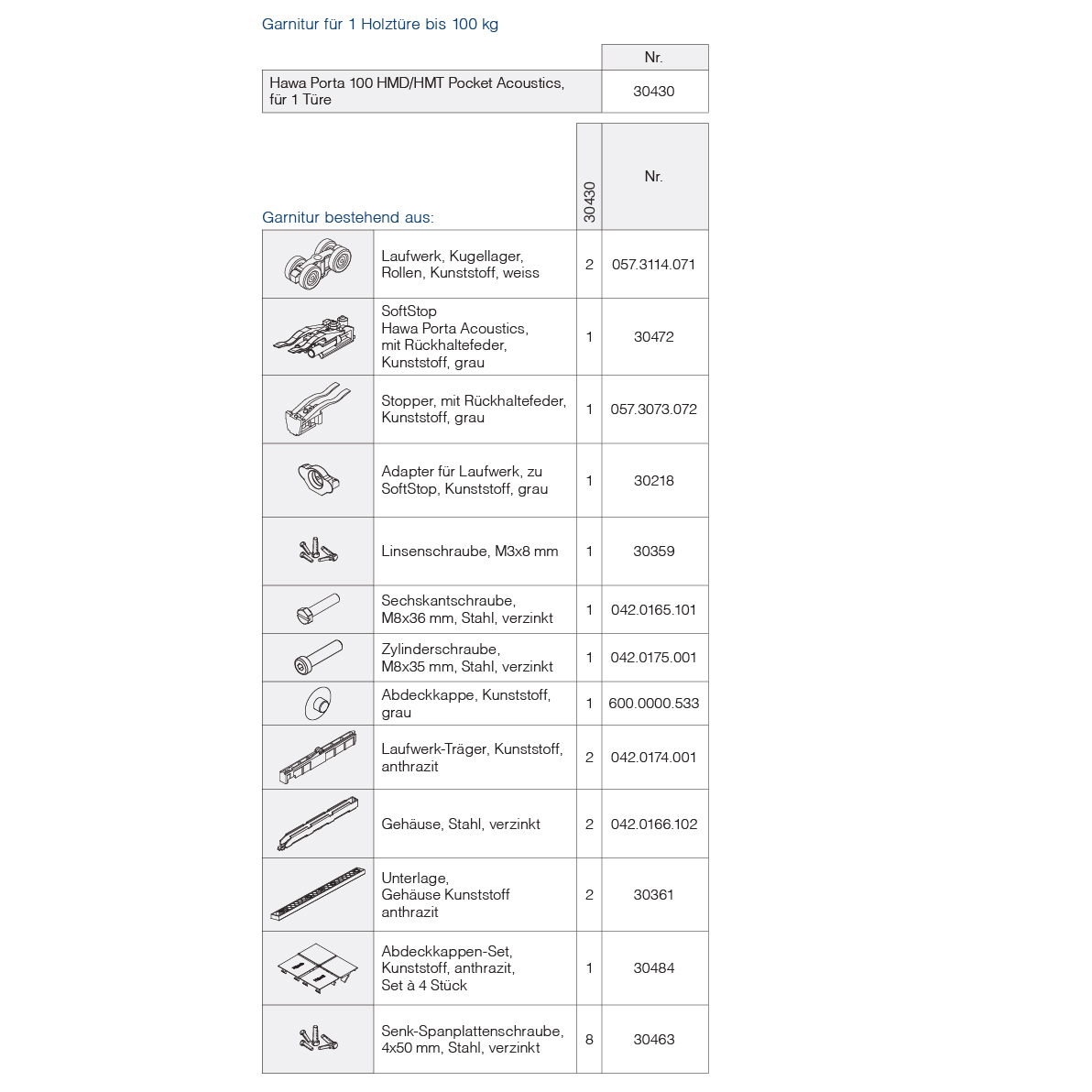 Ferrure pour porte coulissante bois, HAWA Porta 100 HMD Acoustics