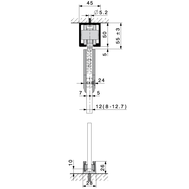 - Épaisseur de porte verre ESG 8, 10, 12, 12,7 mm,