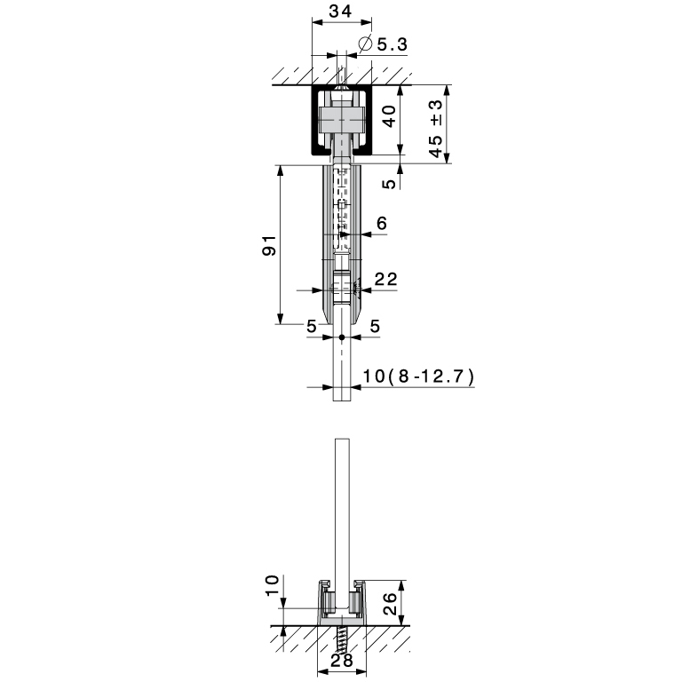 - Épaisseur de porte verre ESG 8, 10, 12 et 12,7 mm,