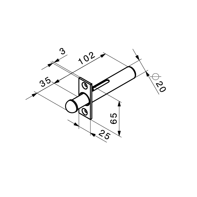 Acier galvanisé, plaque de vissage carrée 25 x 65 mm, douille pour perçage, taille: Ø 20 x 102 mm