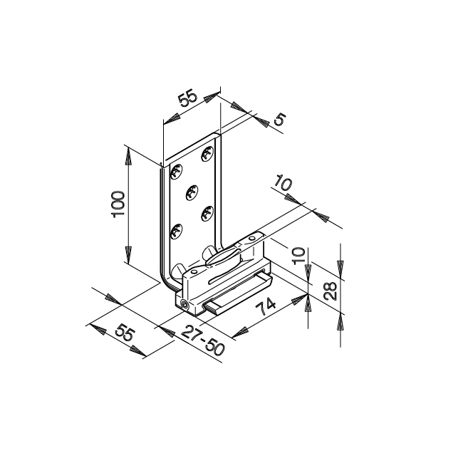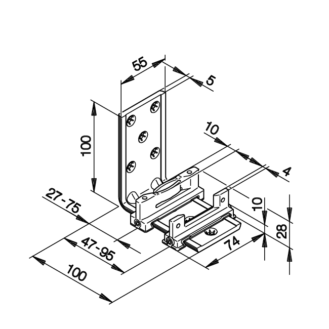 Équerre de fixation aluminium incolore anodisé, guidage au sol plastique sans jeu, pour montage mural, réglable sur les côtés, pour portes coulissantes jusqu'à 120 kilos