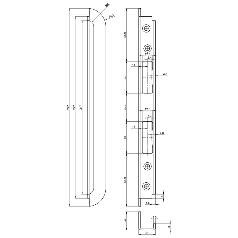- 247 x 21 x 23/8 mm