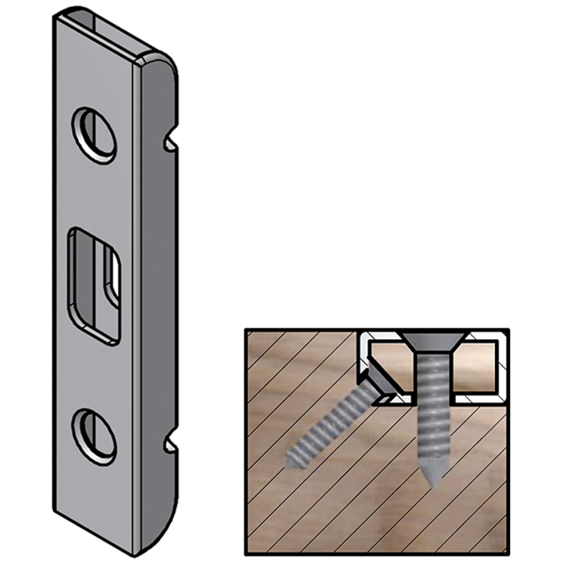 Inox mat, à fraiser, avec découpe pour boulons de verrouillage, utilisable universel en DIN à droite et DIN à gauche, avec vis auto-foreuses pour raccord diagonale