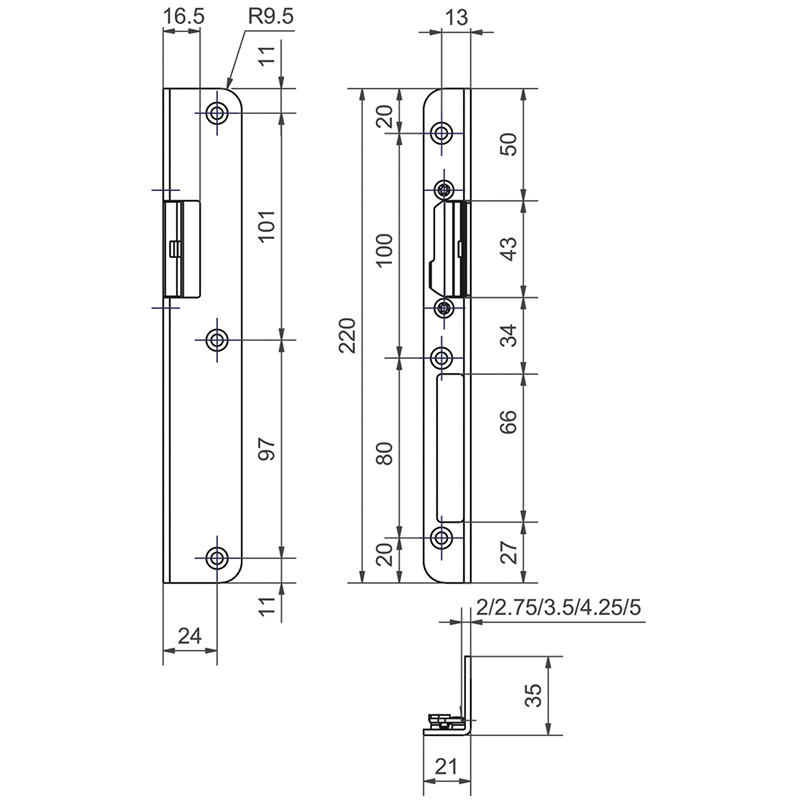 - 2 / 2,75 / 3,5 / 4,25 / 5 mm