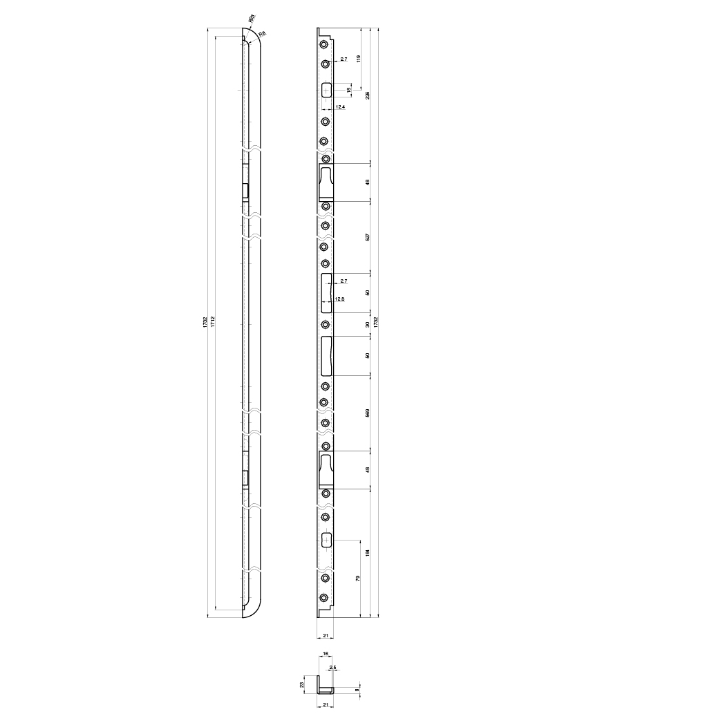 Gâche longue à fraiser MSL B-1854.15/21, pour verrouillage multipoints BiTribloc