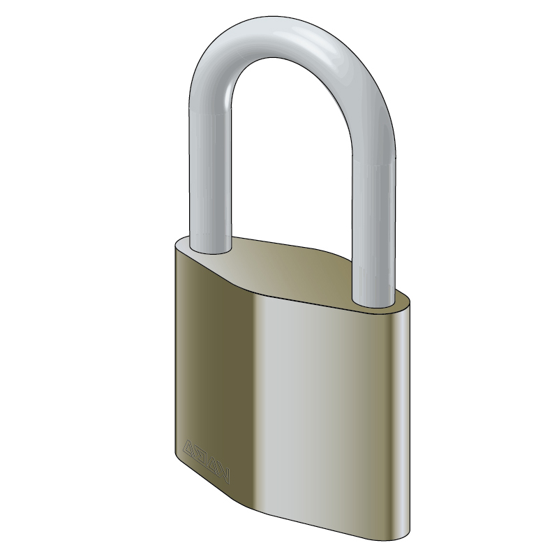 corps en laiton nickelé, avec anse trempée et chromée, la clé ne peut être retirée que si l'anse est fermée