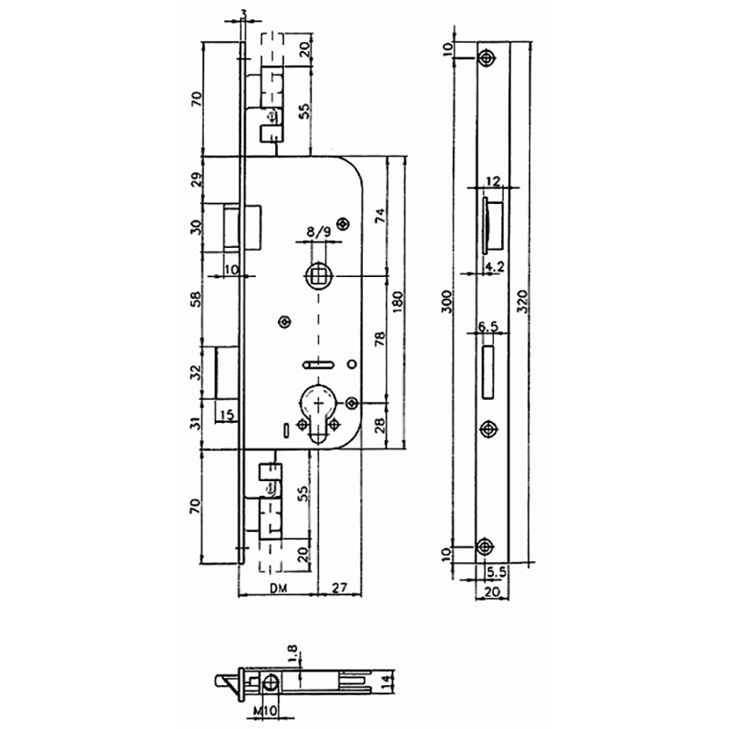 Serrure à mortaiser MSL 1822, avec têtière d'angle 20 x 320 mm, galvanisée