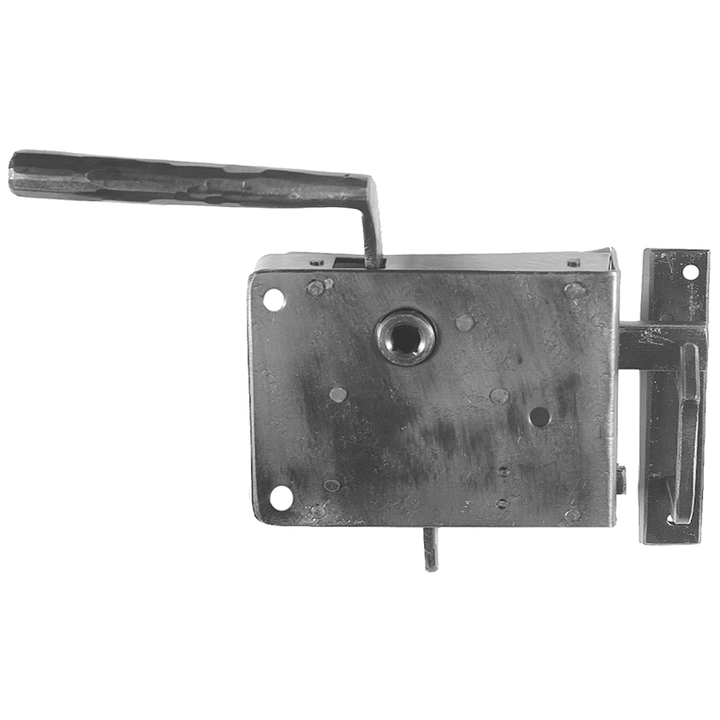 Fer couleur naturelle (faible résistance à la corrosion), incl. gâche pour recouvrement de 18mm, avec loquet en saillie et verrou de nuit, sans garniture de porte, avec tige carrée, Vis comprises dans la livraison