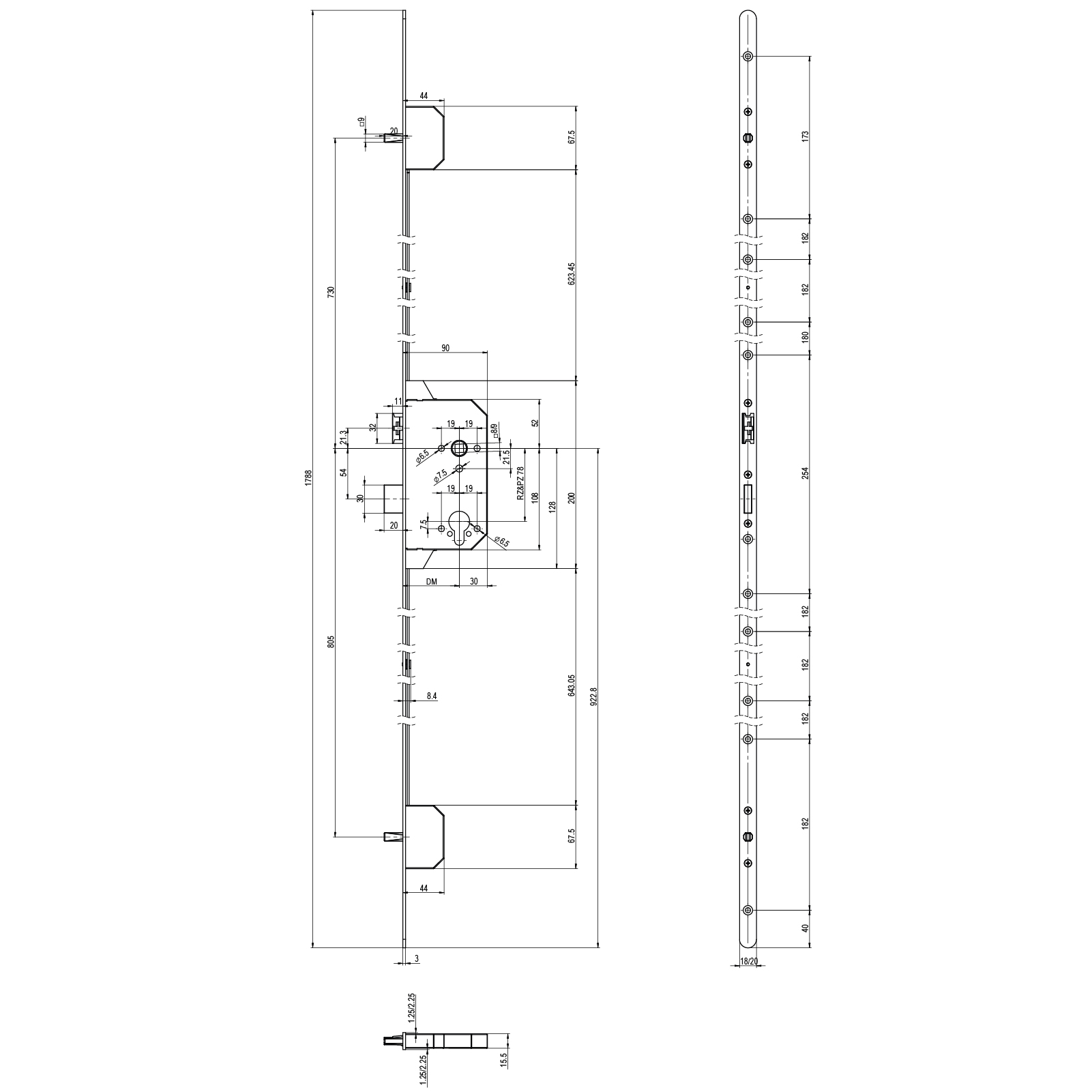 Verrouillage multipoints MSL PolyTribloc 30340, têtière ronde 18 / 20 x 1788 mm