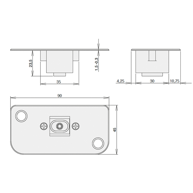 avec plaque d'appui en acier inoxydable et boîtier de base en aluminium, adapté aux tringles à crémone de 8 ou 10 mm, avec plage de réglage continue